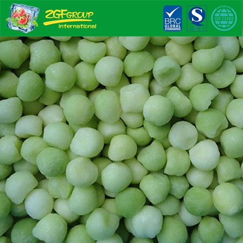 IQF cantaloupe melon balls are processed from freshly picked cantaloupe melons by peeling, removing seeds, cutting, sterilizing, freezing, packing and metal detecting. The products shall be sweet and with typical flavor & taste of cantaloupe melon.